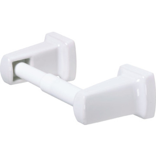 White Porcelain Toilet Paper Holder - White Plastic Roller - Concealed Screw Mount - Mfg #97301