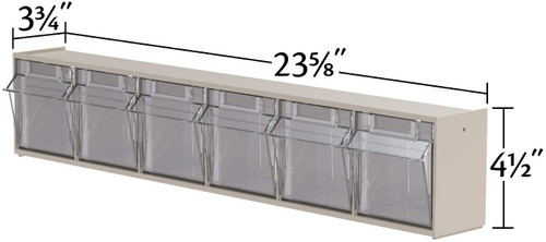 Akro-Mils® 6 Bin Tilt View Storage System - Self-Standing Or Wall Mountable - Crystal Clear Bin Cups Allow For Quick Content Identification - 24" Wide X 4-1/2" Tall X 3-3/4" Deep - Each Bin Unit Comes With Card Stock Labels To Identify Your Bin Contents. - Mfg #06706